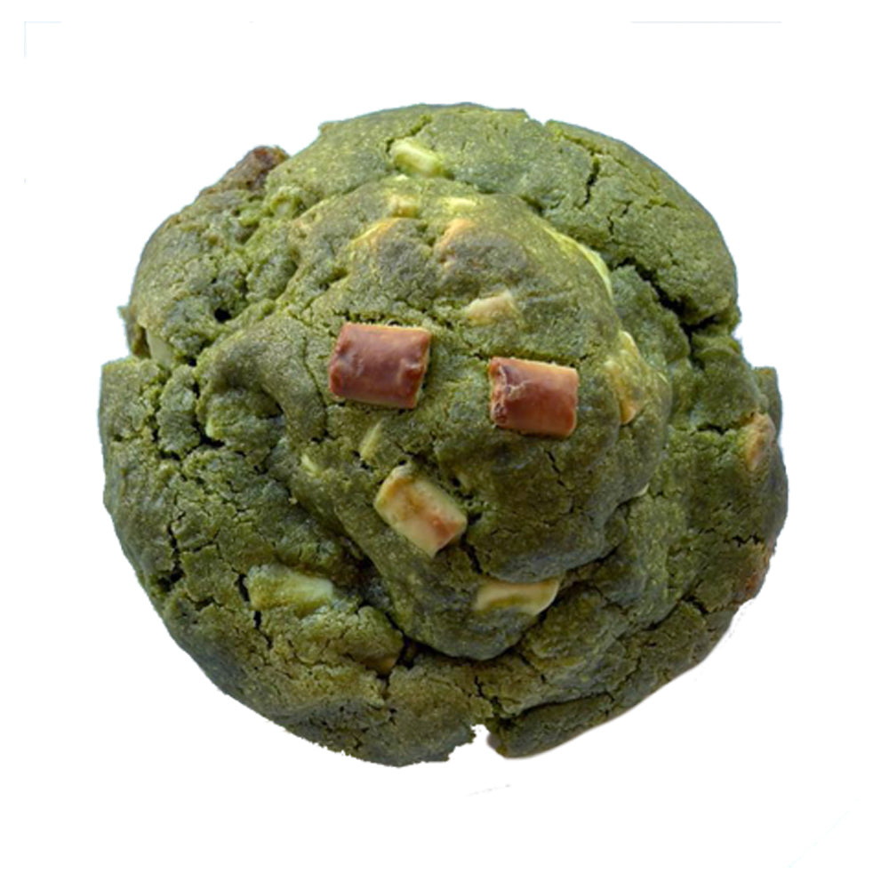 Ingredients: Butter, sugar, white chocolate, flour, salt, bicarbonate of soda, baking powder, egg, matcha powder, vanilla extract.